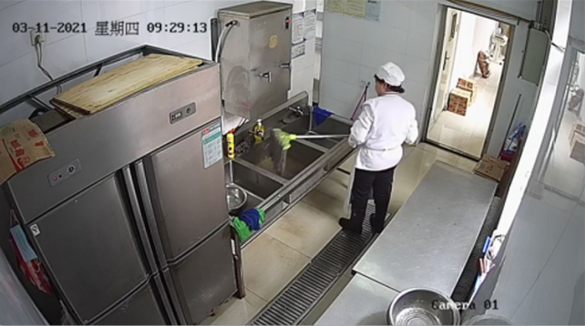 利用计算机视觉识别技术,实现后厨从业人员特征,从业人员行为,生产加工环境,生产作业环节的四大类,24子项的智能无人值守 监管系统,并针对发现问题即刻报警,提示现场从业人员立即改正违规行为,终止食品安全风险进一步扩大,并向相关管理单位推送报警 信息,使相关单位负责人随时掌握后厨食品安全风险。